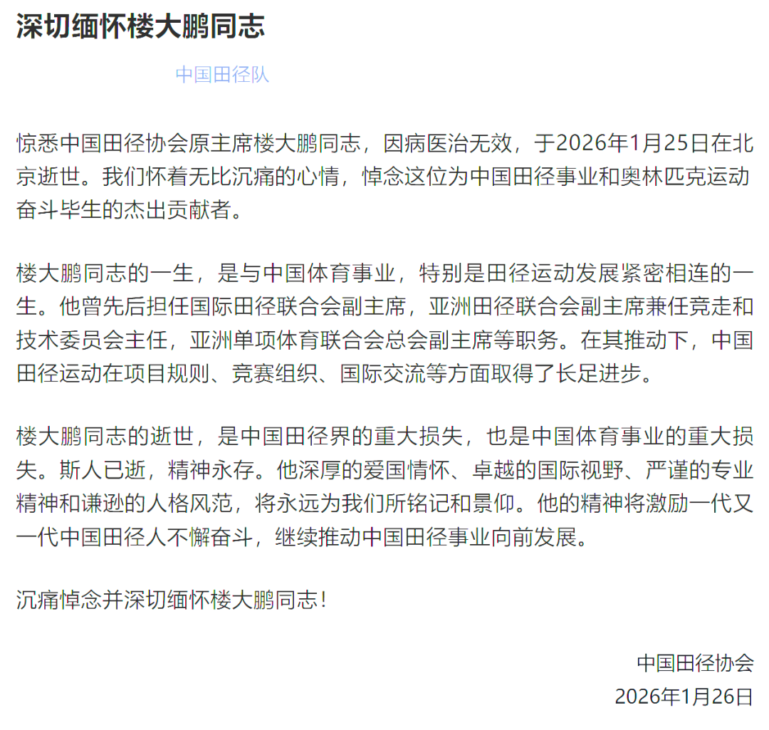 突发讣告!楼大鹏逝世,曾担任北京申奥主要陈述人